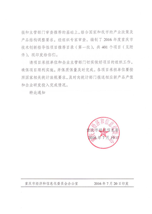 熱烈祝賀重慶綠色科技開發有限公司申報的“互聯網+”多色溫防霧霾、亮度遙調新一代LED路燈及遠程智能控制系統成功列入《2016年度重慶市技術創新指導性項目》