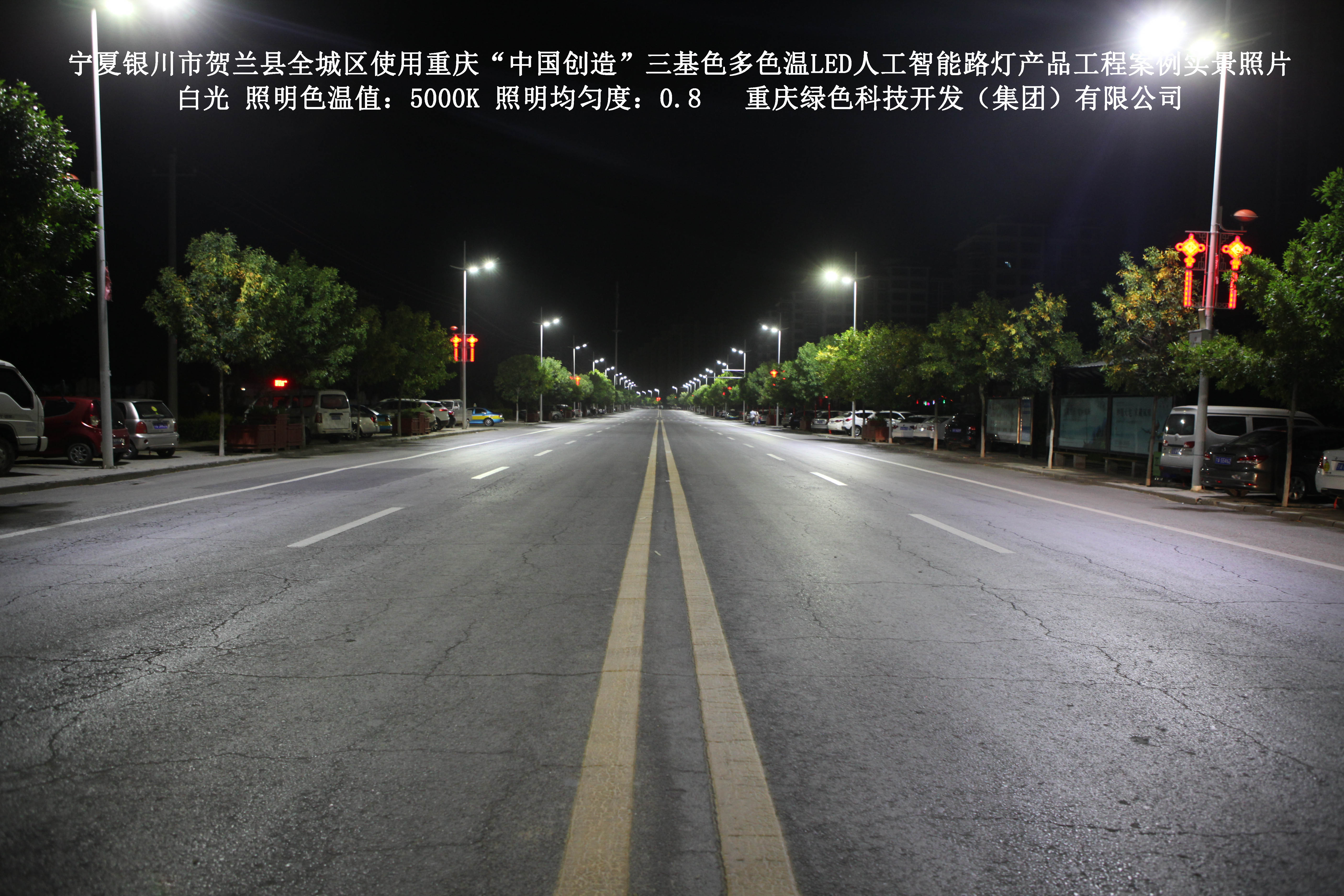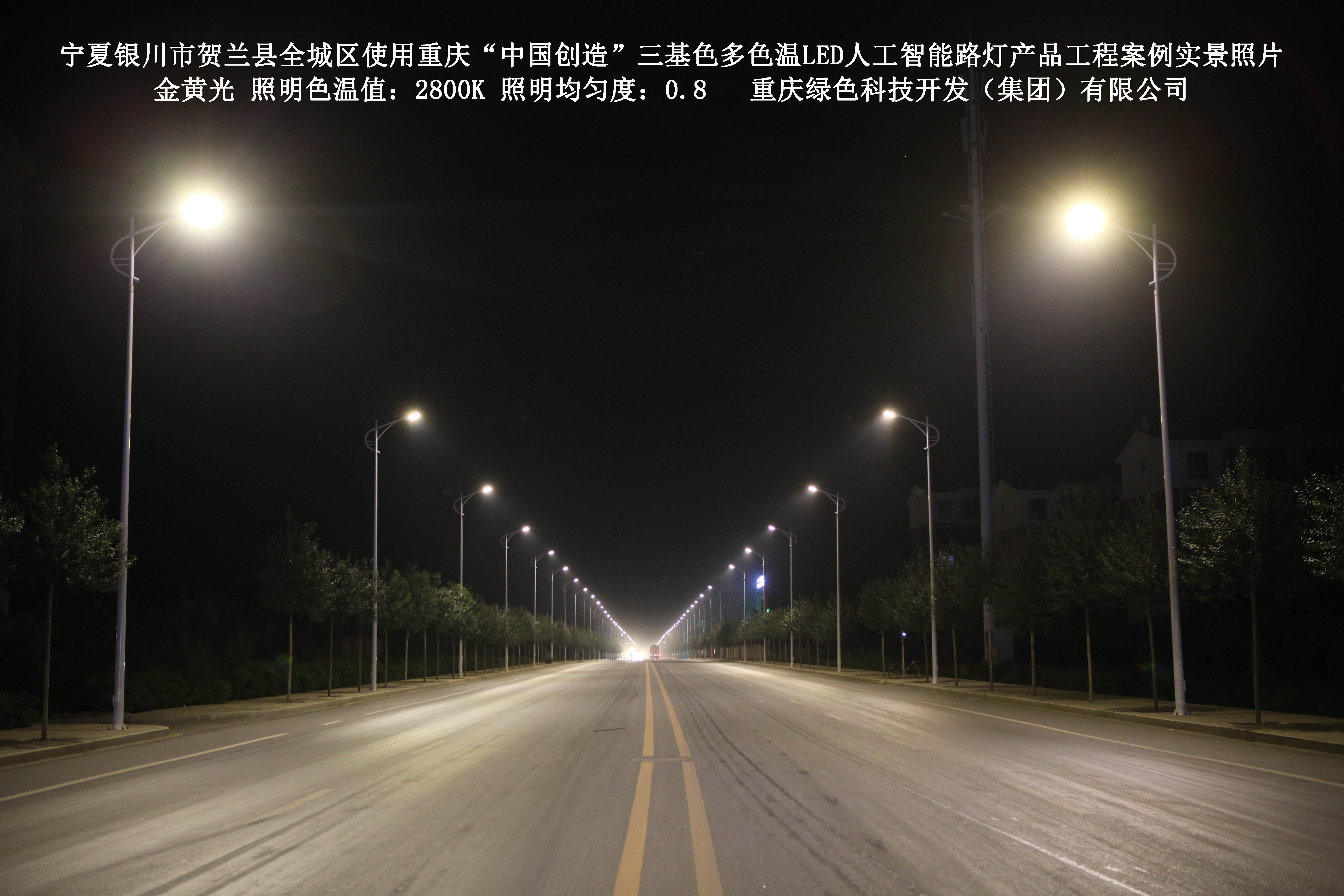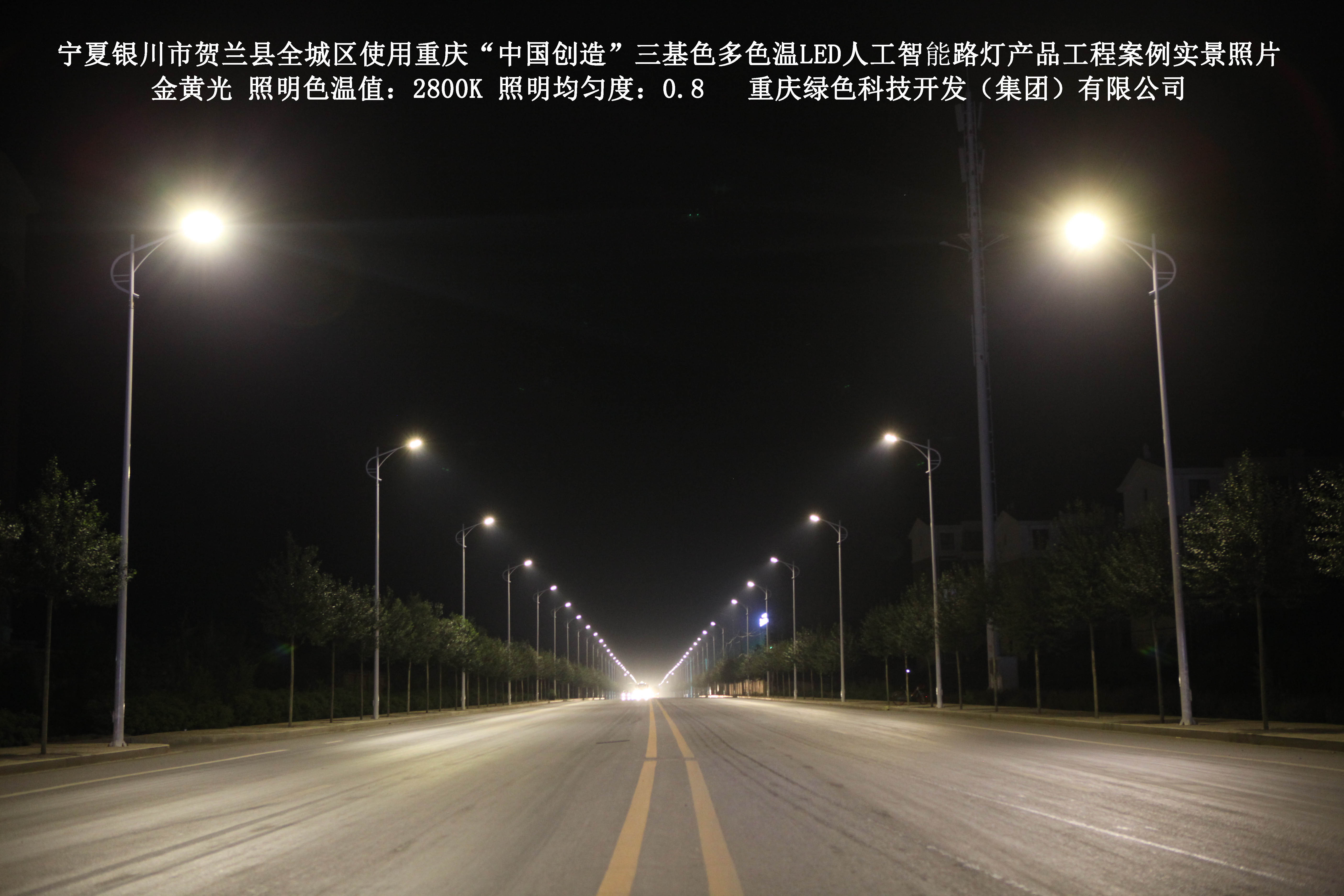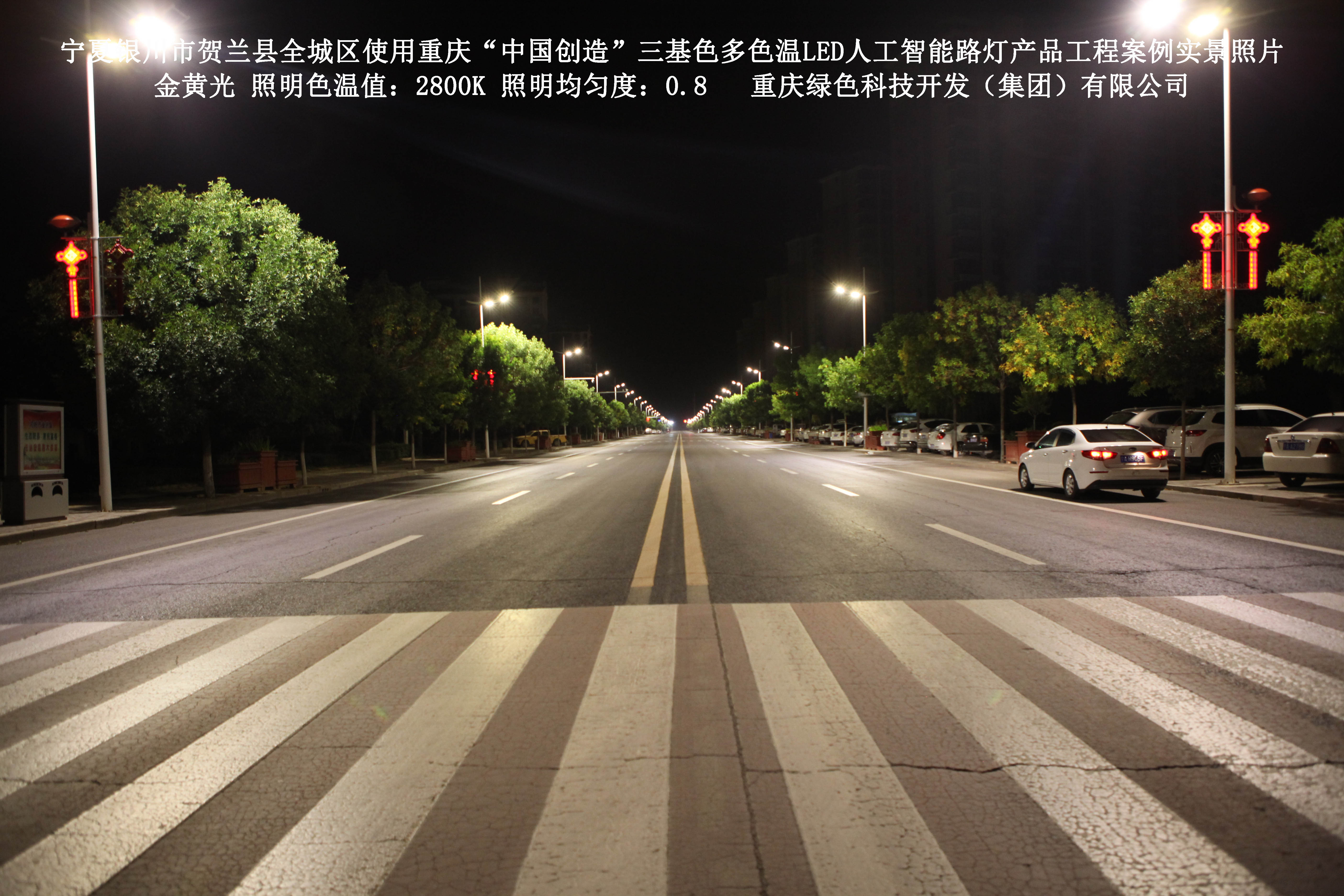 寧夏銀川市賀蘭縣全城區(qū)使用我司研造的重慶“中國(guó)創(chuàng)造”三基色多色溫