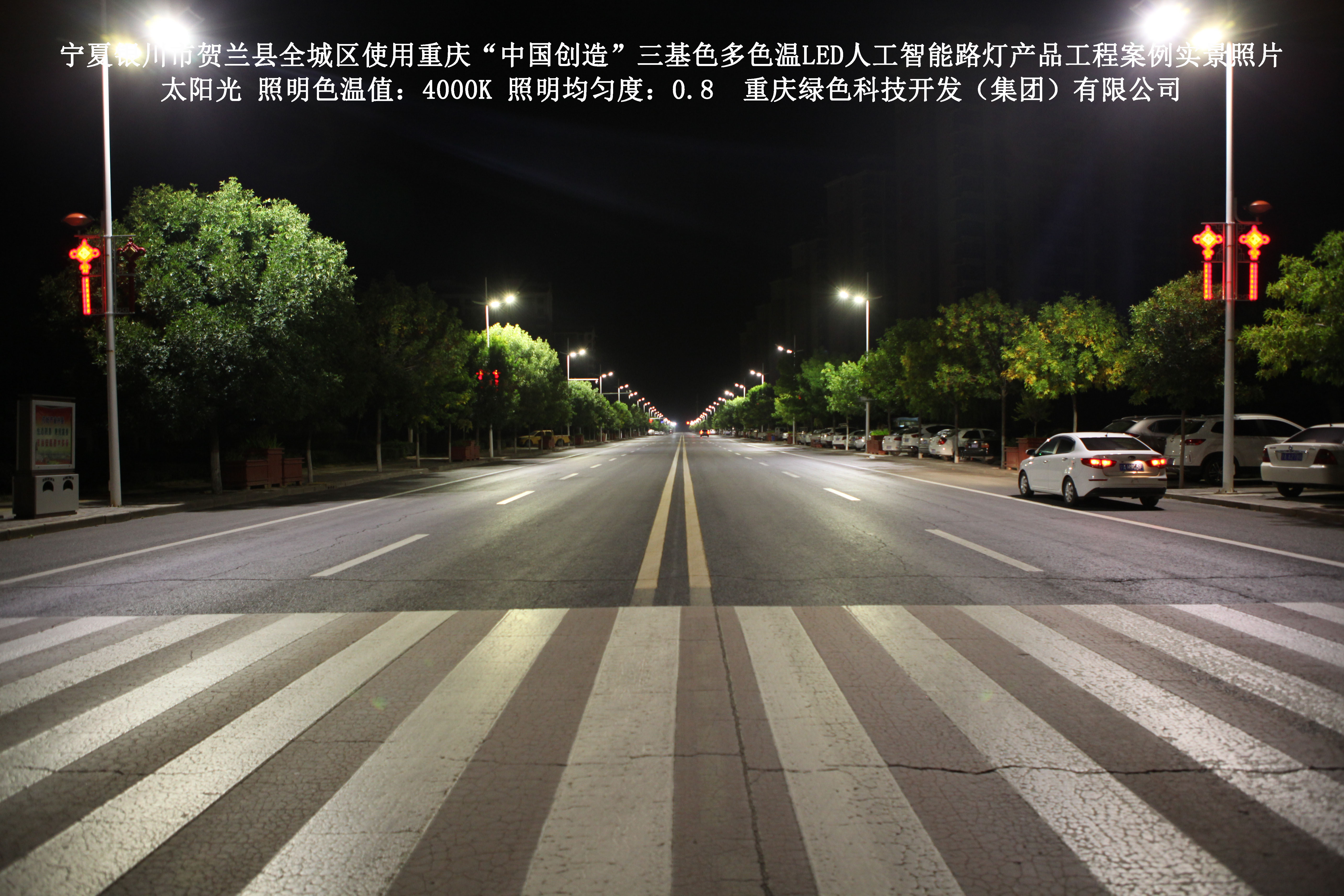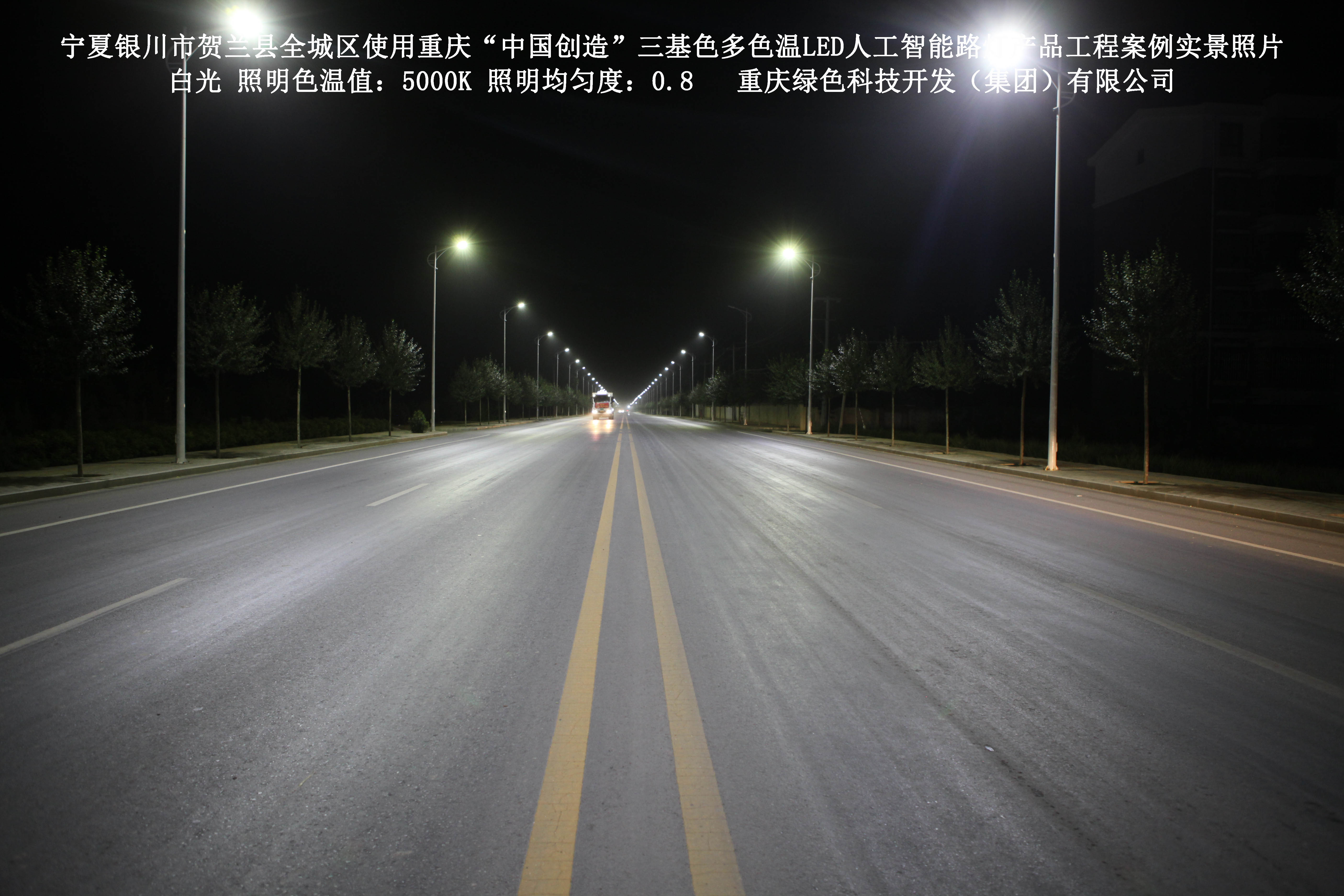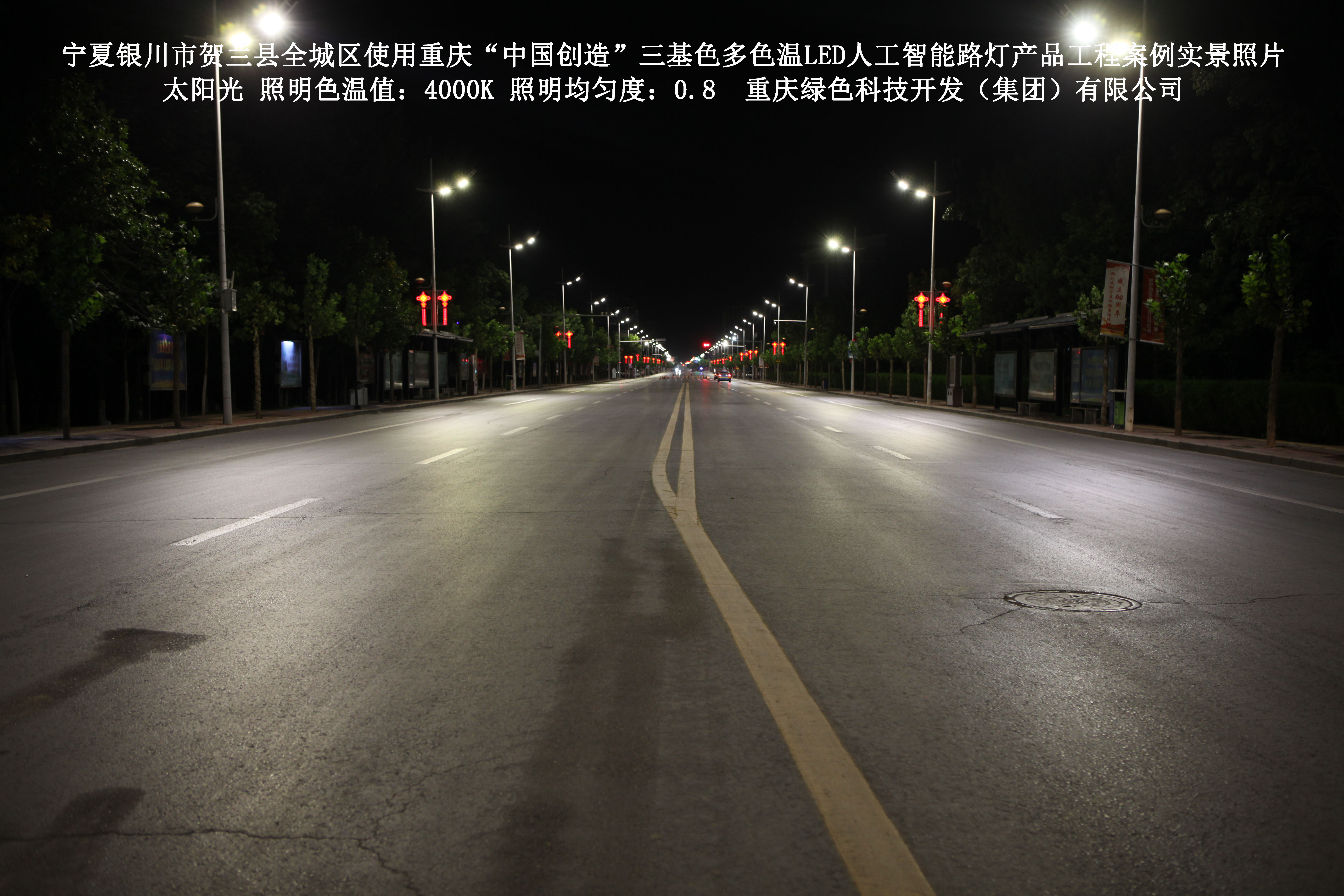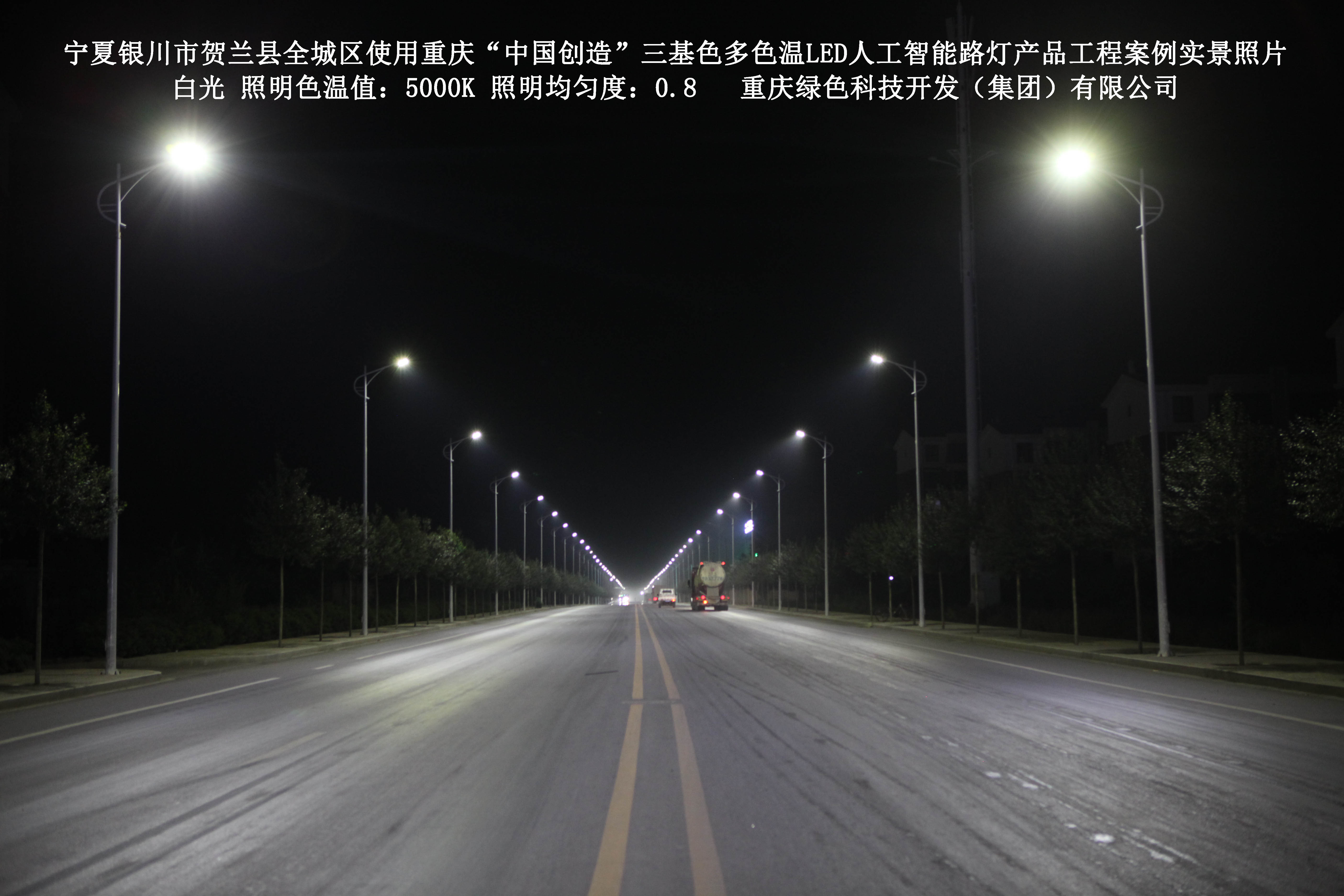 寧夏銀川市賀蘭縣全城區(qū)使用我司研造的重慶“中國(guó)創(chuàng)造”三基色多色溫