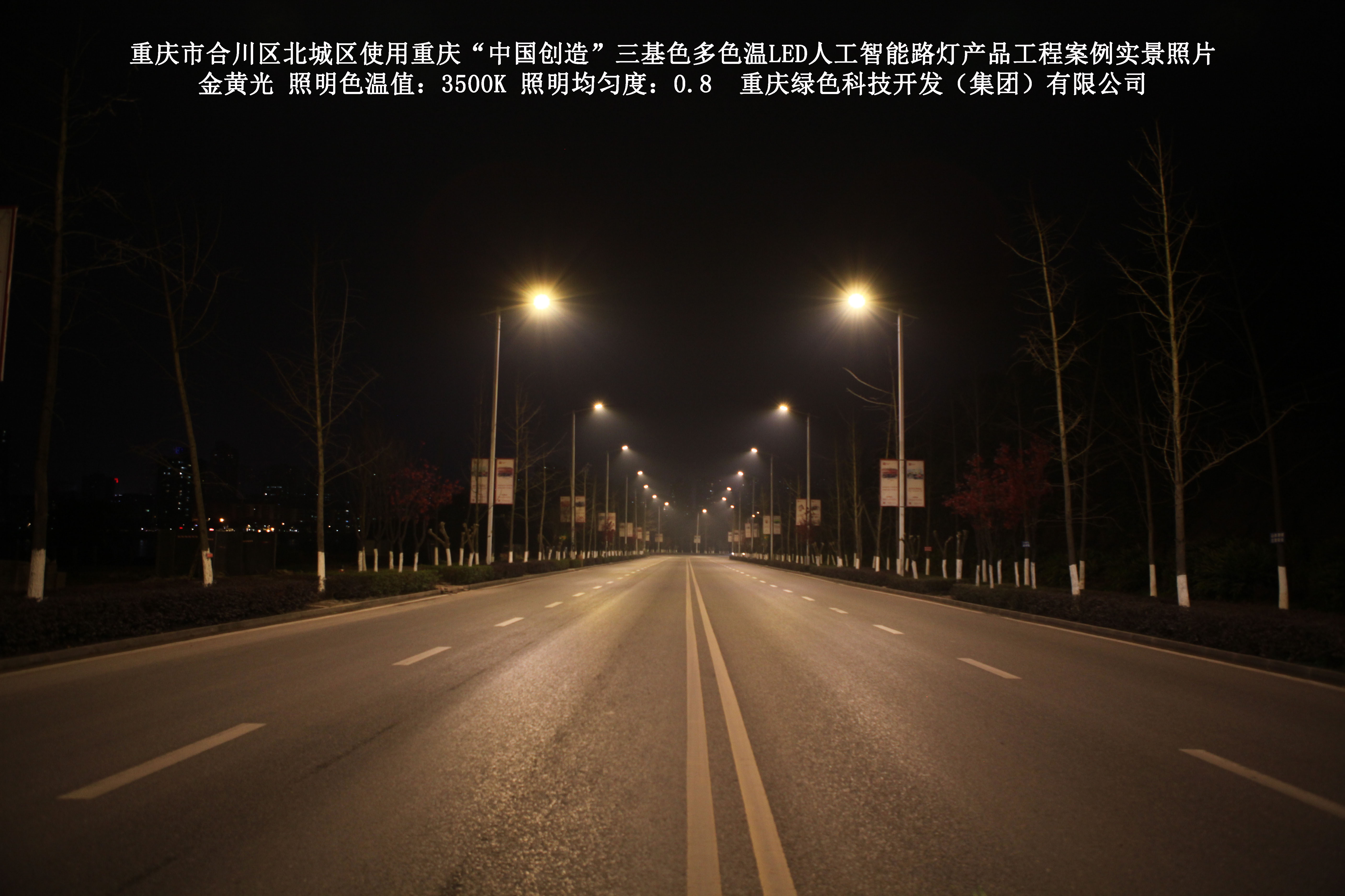 2019年1月,重慶市合川區城市管理局使用了我司研發制造的重慶“中國創造”三基色多色溫LED人工智能路燈5144盞,對合川區北城區實施了綠色照明科技節能改造工程,該工程已全面竣工。工程實施后,極大地提高了合川區北城區城市照明清晰度、燈光均勻度、舒適度。通過智能終端實現單燈感知、線纜防盜報警,與原高壓鈉燈相比,節能率60%以上,有效解決了關閉控制回路或間隔關燈方式造成的照明暗區,確保行人和車輛通行的安全,實現城市路燈照明系統的智能化管理,推進了智慧城市建設。