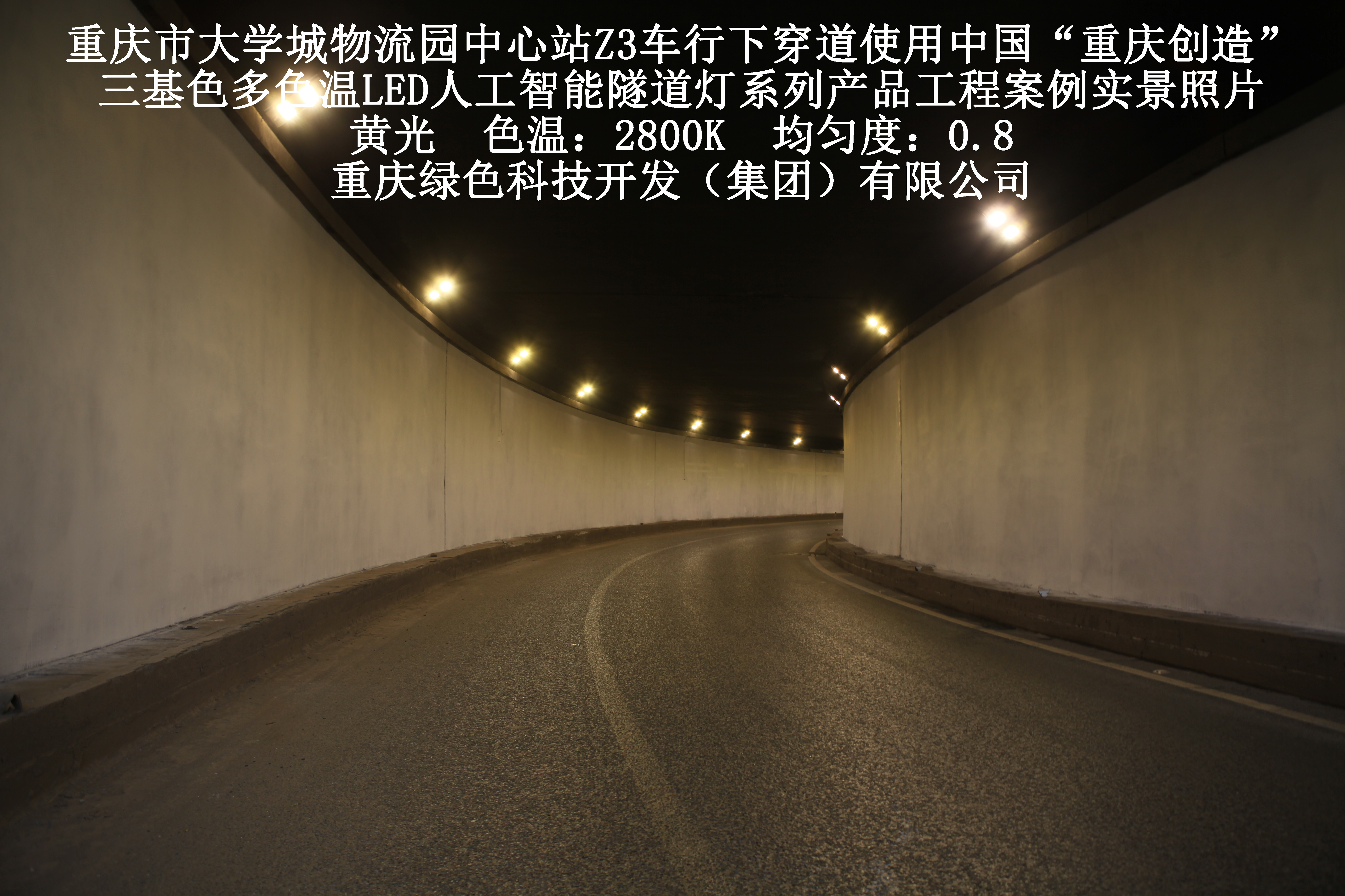 2019年3月,重慶市大學(xué)城物流園中心站Z3車行下穿道使用我司自主研發(fā)制造的,重慶“中國(guó)創(chuàng)造”三基色多色溫LED人工智能隧道燈系列產(chǎn)品,實(shí)施了市政設(shè)施品質(zhì)提升工程(工程案例實(shí)景照片附后)。此項(xiàng)目的實(shí)施,極大地提高了隧道內(nèi)照明清晰度、燈光均勻度、舒適度及照明安全性,實(shí)現(xiàn)了隧道照明系統(tǒng)的智能化管理。