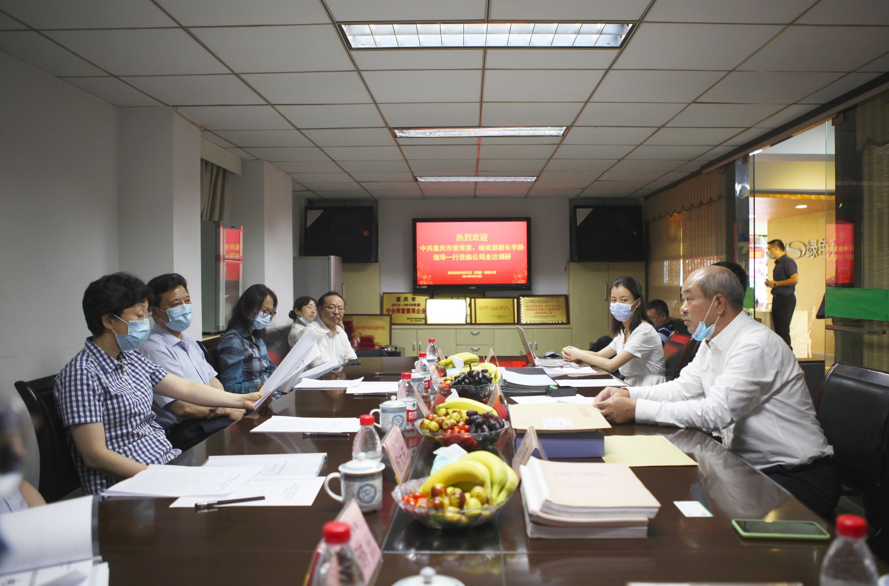 9月10日,中共重慶市委常委、統戰部部長李靜蒞臨重慶綠色科技開發(集團)有限公司走訪調研,中共重慶市委統戰部副部長、市僑聯黨組書記史全波,中共重慶市委統戰部副部長、市僑辦主任楊大慶,中共重慶市渝中區委常委、區統戰部部長章琳一同隨行。會上董事長鄧明鑒分別匯報了企業生產經營、向貧困縣扶貧捐助及個人參政議政情況,李靜常委在聽取匯報后對公司利用自主知識產權研造的多色溫全光譜LED智能照明先進技術表示贊賞,對鄧明鑒董事長認真履行多項職務所做的工作,堅持做好參政議政、捐助貧困縣,助力脫貧攻堅、服務經濟社會發展、協調各方化解社會矛盾,予以肯定。
