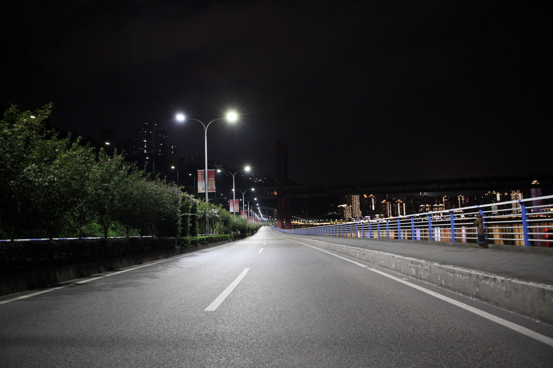 2021年6月,我司使用物聯(lián)網(wǎng)五基色多色溫全光譜LED智慧路燈對(duì)重慶市渝中區(qū)嘉濱路(朝天門至牛角沱段)、牛滴路(牛角沱至滴水巖段)實(shí)施了城市路燈照明改造工程,采取替換的方式將原來(lái)的680盞高壓鈉燈燈具改造為高效節(jié)能、可調(diào)變燈光色溫,照明更舒適的LED智能燈具。改造后燈具可采集環(huán)境溫度、濕度、PM2.5濃度、雨水等數(shù)據(jù),調(diào)整燈光最舒適色溫色彩照明值,提升色彩鮮艷度、照明舒適性,路面照度均勻度和亮度好、無(wú)光斑、顯色指數(shù)高、光色好、眩光小,大大提升了道路照明品質(zhì),獲得社會(huì)各界好評(píng),成為嘉陵江濱江夜景風(fēng)光中一道亮麗色彩!